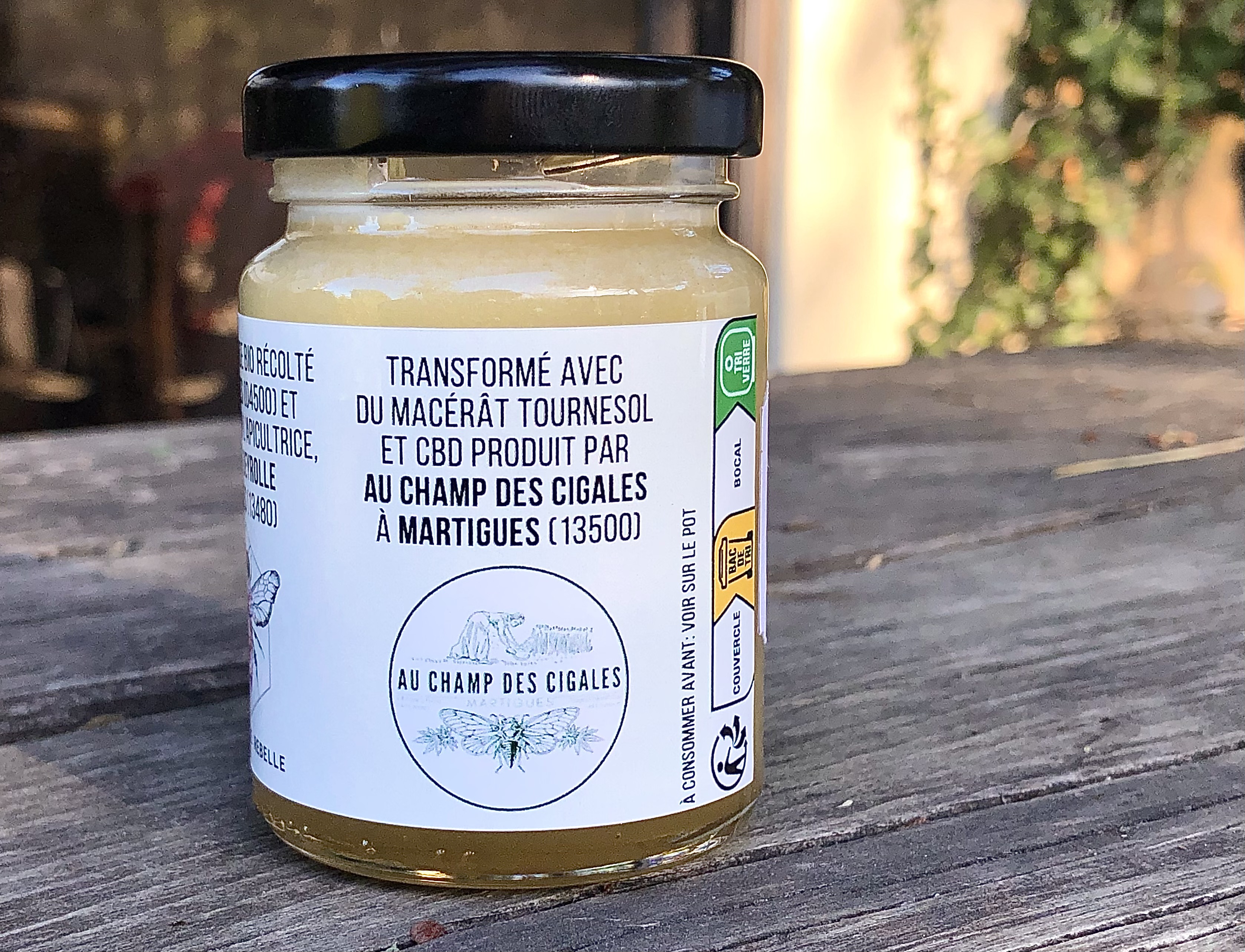 Miel de Lavande BIO récolté à Roumoules (04500) et mis en pot à Cabriès (13480) par l’apicultrice de l’Abeille Rebelle, Mélodie Deyrolle -Transformé avec du macérât huileux tournesol et CBD produit par Au champ des Cigales à Martigues (13500)